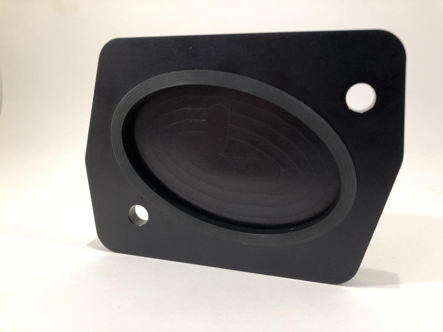 Phenix Engineering Corrado A/C Block Off Plate is machined from 6061 Aluminum then black anodized. Integral to the design is a gasket to seal the air box from the engine bay.
