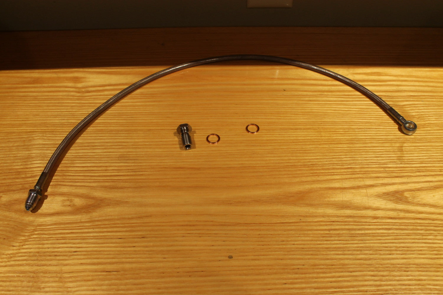 This nifty stainless steel clutch line is a direct replacement for your tired and worn out rubber OEM line that runs between the clutch master and clutch slave for your VW 02A transmission. Constructed in USA using the extensive R&D testing to ensure proper fit and reliability beyond OEM specifications. The banjo bolt is machined from billet 304 Stainless Steel in house to ensure proper flow control. Copper crush washers are also supplied with flatness of =/-.001" of an inch to provide a leak free seal.